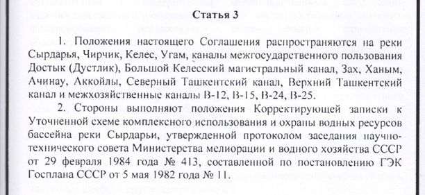 С точки зрения распределения стока Сырдарьи ключевым в соглашении является пункт 2 статьи 3.